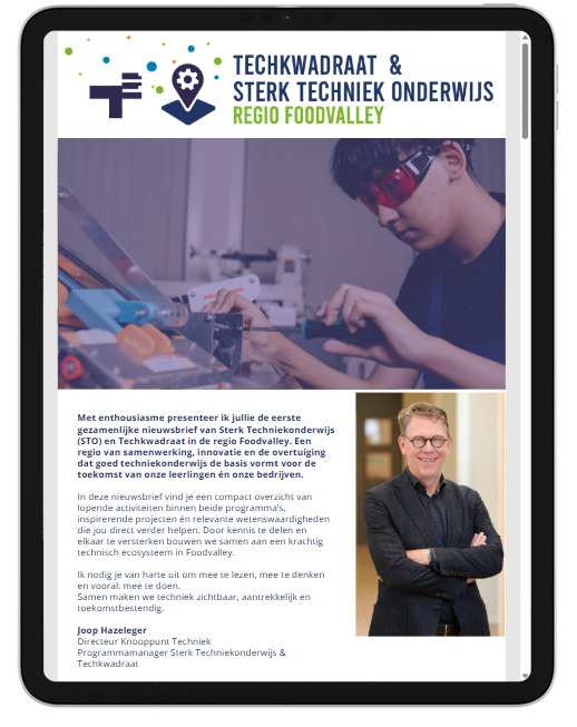 Vandaag verschenen: een mooie eerste nieuwsbrief van Techkwadraat X STO in de regio Foodvalley! Wil jij ‘m ook ont...